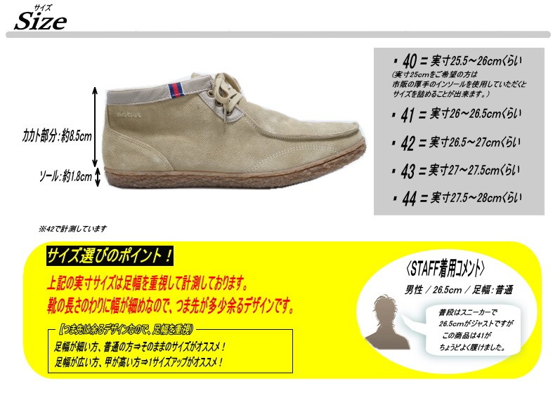 | サイズ | 作り⇒標準 【サイズ選びのポイント!】 足幅が細い方、普通の方⇒そのままのサイズがオススメ! 足幅が広い方、甲が高い方⇒1サイズアップがオススメ! |