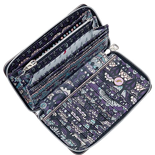 Inside features 16 credit card slots, 2 bill slots, 2 open compartments and 1 zipper pocket