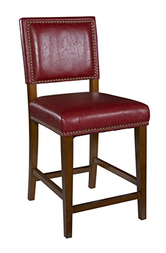 -. Feature : Lovely nailhead trim on seat and back / Red faux leather upholstery, durable rubberwood frame / Classic design with red leatherette to impress / Warm walnut finish to fit your style / Dimensions: 19W x 22D x 45.5H inches; Seat Height: 30 inches