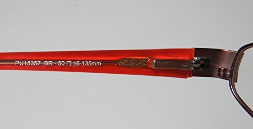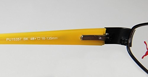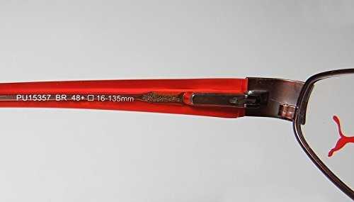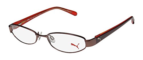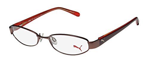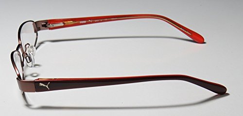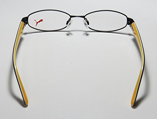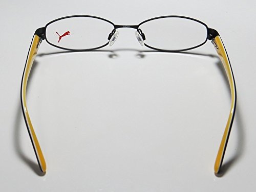 Brand: Puma Style: 15357 Pico Gender: unisex Frame Type: full-rim Frame Material: metal plastic Case: eleganzo The frame is fully rx-able and can be fitted with prescription and/or tinted lenses at most optical stores. Please note that factory demo lenses have a logo stamped on them in ink. These eyeglasses are made of metal and high quality, durable acetate plastic. The frame has spring hinges. Spring hinge temples prevent you from stretching the fit of your glasses and ensure that they remain intact and not become loose or out of shape. Please keep in mind that original case is not included with this frame. However, we will include an Eleganzo hard case at no extra charge to keep your eyeglasses protected. These eyeglasses retail for $140.00 at upscale stores that carry designer frames. Save your money and get them here! The pictures cannot fully reflect the beauty of this piece of designer eyewear. These eyeglasses look even more elegant in real life. This is one of the most popular Puma styles on the market right now. 0 |