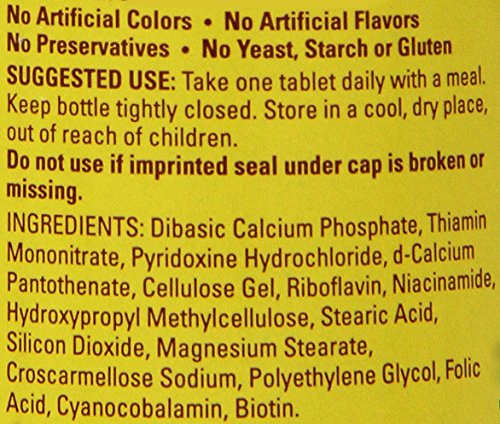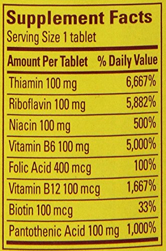 -. Feature : Pack of two bottles, each bottle containing 60 time-release balanced Vitamin B supplement tablets (120 total tablets) / Recommended as part of daily regimen for health, longevity, mood, and energy / Combination of essential B vitamins such as thiamin, riboflavin, niacin, vitamin B-6, and vitamin B-12; contains 1667% RDA of Vitamin B-12; 5000% of B-6; and 6667% of thiamin per tablet serving / Time-release formula releases nutrients to body over extended period / Founded in 1971, Northridge, California-based Pharmavite manufactures Nature Made vitamins and Nature's Resource herbal products and was instrumental in developing Good Manufacturing Practices (GMPs) for supplements