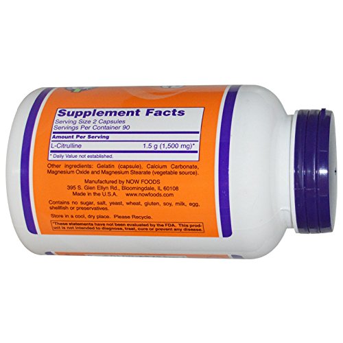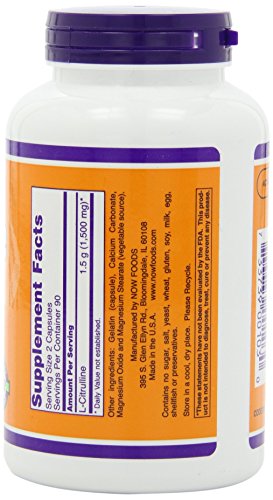 NOW Foods L-Citrulline 750 mg, 180 Capsules (2 Pack)