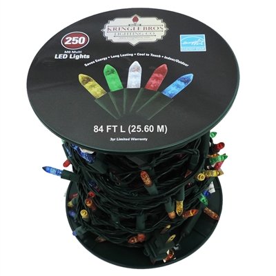 Kringle Brothers M6 Multi Color LED Christmas Light Strand on Spool - 250 Lights - 84 ft long - 4" Spacing of LED's