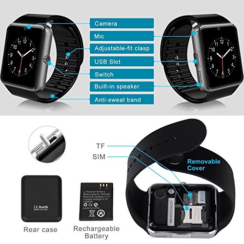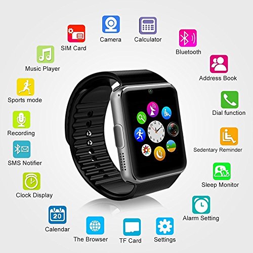 -. Binding : Electronics -. Brand : faceled -. EAN : 0713827433844 -. Feature : 1.54" TFT LCD 2.5D Radian Capacitive Touch Screen 240*240 pixels, OGS Laminating Process / Receive notifications on your wrist, including caller ID, texts and emails. Make or answer calls. / It supports GSM 850/900/1800/1900 MHz Network,Make this watch be a real standalone CellPhone.Enable to make a call or receive a call with a Gsm Sim Card inserted. / This watch can also work with iPhone as a Bluetooth device(Means you can receive a call or make a call also sync your contacts to this watch via bluetooth).But Some functions like Notification Push,Remote capture,Anti-lost are currently unavailable on iOS because the iOS app is unavailable now / Function:Sport health,Pedometer,sedentary remind,sleep monitoring,Message Reminder,Call Reminder,Answer Call,Dial Call,Remote Control,Tow-way anti lost,NFC for quick pairing. QQ wechat TWITTER FACEBOOK etc realtime message, SMS push message, news app push message, system setting, agenda, sync notification -. Label : faceled -. Manufacturer : faceled -. PackageQuantity : 3 -. ProductGroup : PC Accessory -. ProductTypeName : NETWORKING_DEVICE -. Publisher : faceled -. Studio : faceled -. Title : Bluetooth Watch Wrist Watch Phone with SIM Card Slot ,camera,SmartPhones, Make calls/Support SIM/TF for IOS,Android ,Samsung S5 S6 Note 4 Note 5 HTC Sony LG and iPhone 5 5S 6 6 Plus(Black) -. UPC : 713827433844