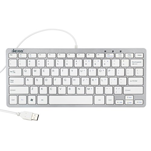 iKKEGOL USB Slim Mini Wired 78 Key Small Super Thin Compact Keyboard for Desktop Laptop PC Win 7 Mac (White)