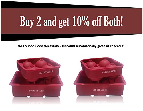 - REDUCED PRICE - LIMITED TIME OFFER - Includes (1) Jumbo 2 inch square mold and (1) large Ice Ball Sphere mold. Each mold makes 4 Large Ice Balls or 6 Jumbo Cubes for that perfectly chilled beverage. We call them Big Chillers for a reason!