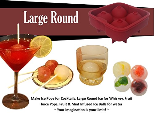 - EASY RELEASE – Silicone provides flexible molds for a variety of uses. The novelty large square mold shape and round sphere ice ball can be used to freeze soup bases, herbs, ice coffee, and juices for popsicles. They’re the perfect Jello shot mold or soap mold, too! Drop slices of lemon or berries in to the water before freezing for a great addition to tea or water.