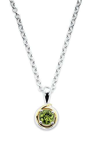 -. Feature : 925 Sterling Silver with 18k Gold / 7x7 mm Peridot gemstone / Sterling Silver 17" Rolo Chain with Lobster Claw Clasp / Gift Box Included / Lifetime Warranty Against Manufacturers Defects
