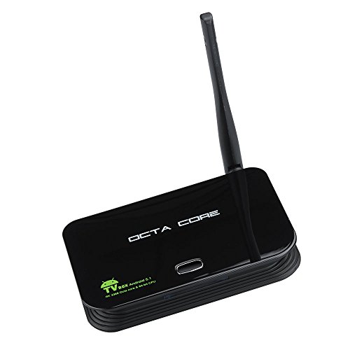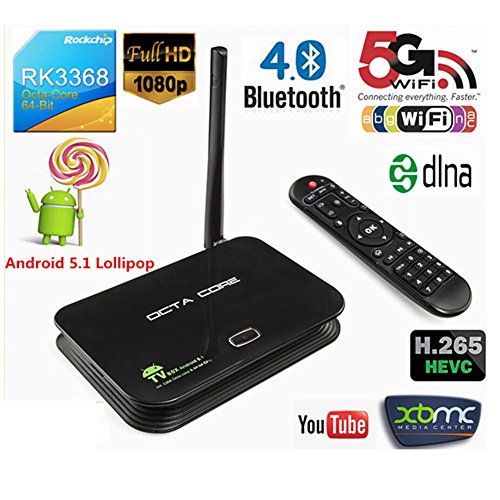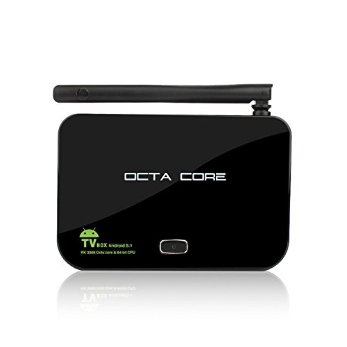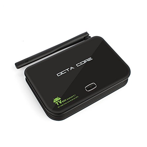 - Feature : Come with Kodi/Xbmc pre-installed, this box making your tv smart and upgrading your home entertainment system easier, offering a simple and easy way to have your tv with a multitude of entertainment options and a use friendly interface. / Runing android 5.1 system, this box giving you the benefit of using all the latest updates and having access to all the tools, games and apps at the play store smoothly. / Supporting Wifi and DLNA, allowing you to connect your TV to a wide range of devices and stream any content you want. / Come with a 64 bit Octa Core processor, letting you multitask and easily switch between apps, upgrade your home TV experience with KODI-an open source media player that gives you access to movies, audio, podcasts and more. / Come with 16GB internal storage, you won't have any trouble storing all the media files you plan to watch right on the box, and if you feel like that is still not enough, simply put the rest of your files onto an SD car (up to 32GB) and Hard Drive