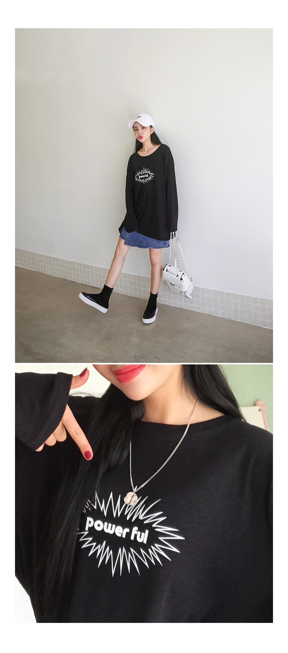 앞 나염 디테일이 포인트가 되는 티셔츠 아이템!
