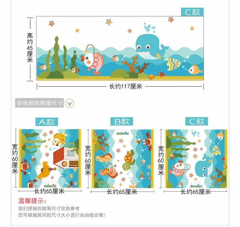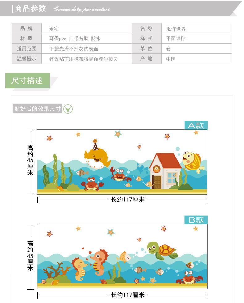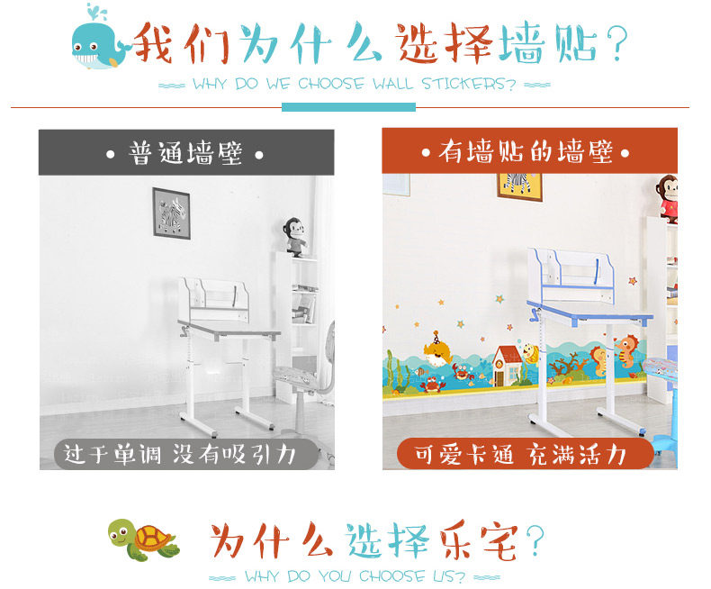 卡通儿童房卧室墙角自粘墙贴纸客厅墙角腰线踢脚线墙贴画海底世界