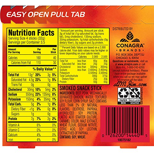 Slim Jim Smoked Snack Sticks, Original, .28-Ounce, 14 Count