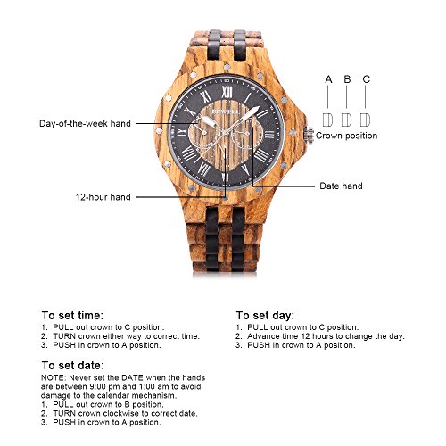 Excellent Gift:Carefully Packaged with Watch Box. Wood watch makes it become the special fashionable accessory for the season.It is a great gift choice to your beloved ones for Christmas,Thanksgiving day,Wedding,Anniversary, Birthday, Graduation, Valentine's Day, Mother's Day, etc.