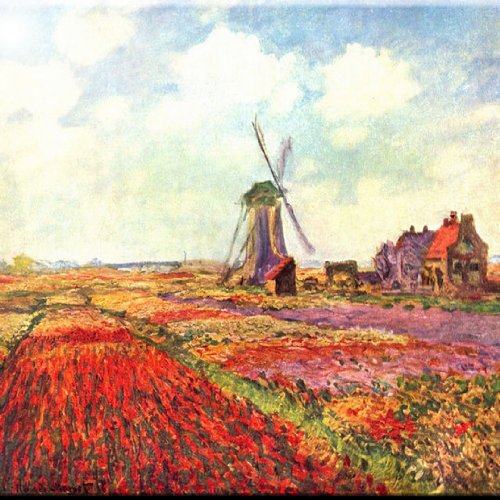 Rikki Knight Claude Monet Tulips of Holland Design Art Ceramic Tile, 4 by 4-Inch