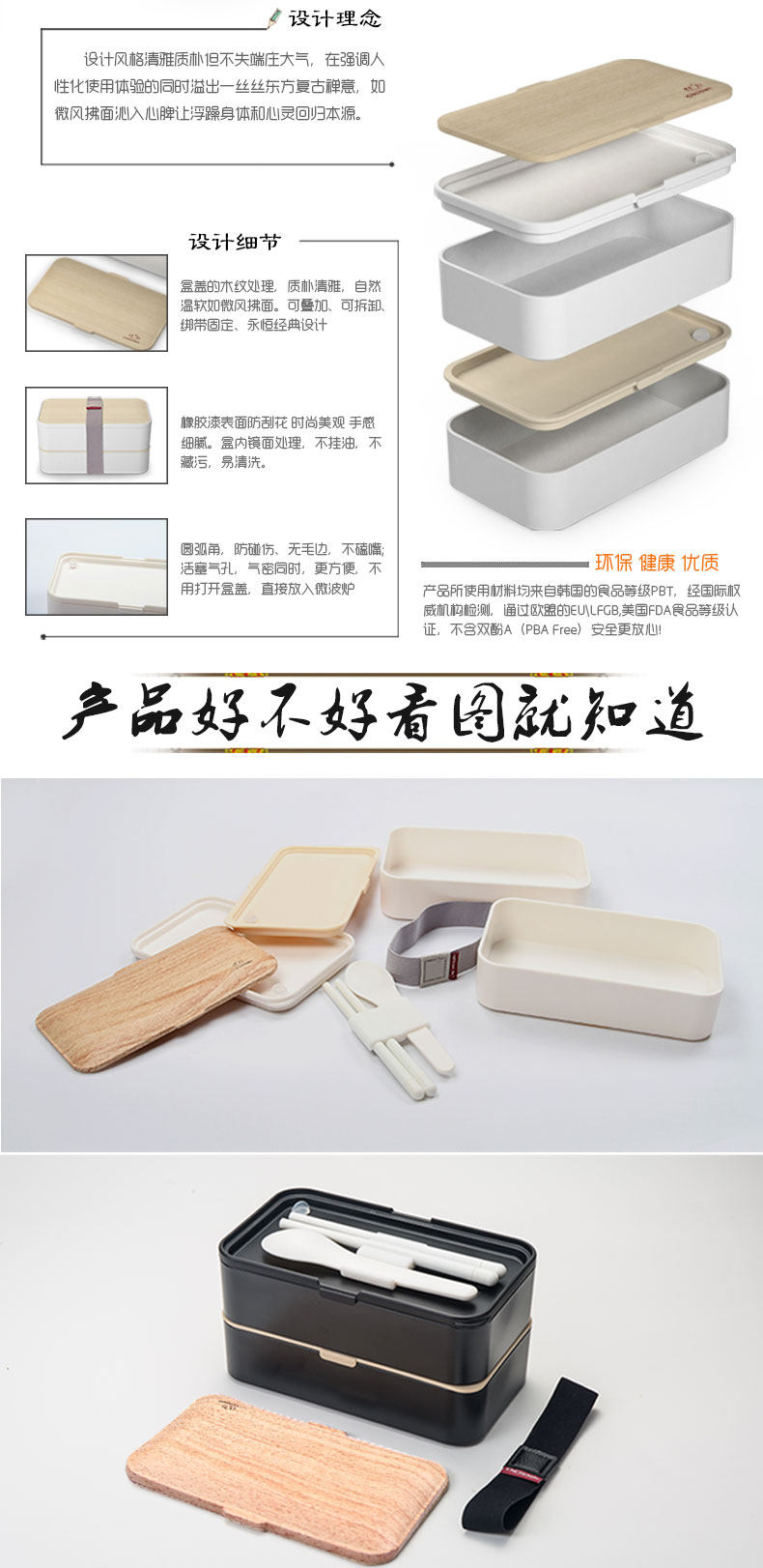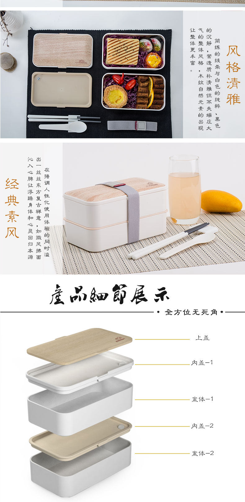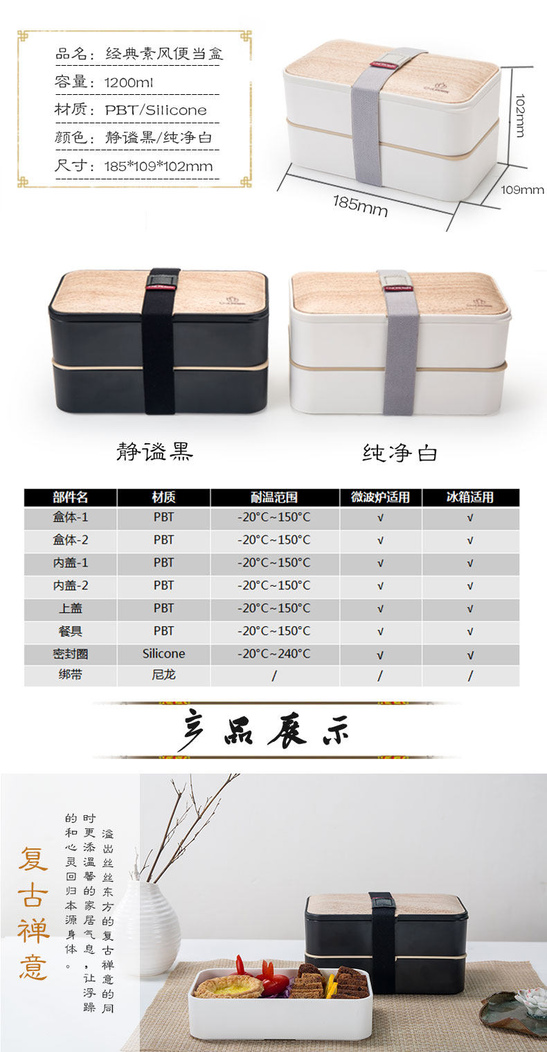 新款双层便当盒 日式塑料方形饭盒高档便当盒2层微波保温