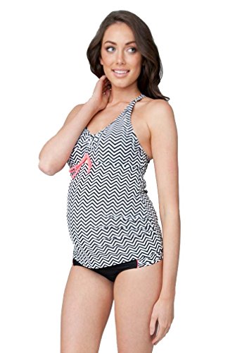 This eye-catching maternity 2 piece tankini is perfect for lazy days by the pool. The adjustable, crossover straps and removable bust pads provide the lift and support you need, while the gathering over your bump creates a flattering fit through all stages of your pregnancy. Sizing (order pre-pregnancy size) XS=4 S=6 M=8 L=10 XL=12Feature