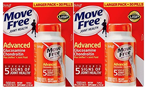Move Free Advanced Glucosamine and Chondroitin Joint Health Supplement Tablets, 2-Pack, 200 Tablets Each, Totally 400 Tablets