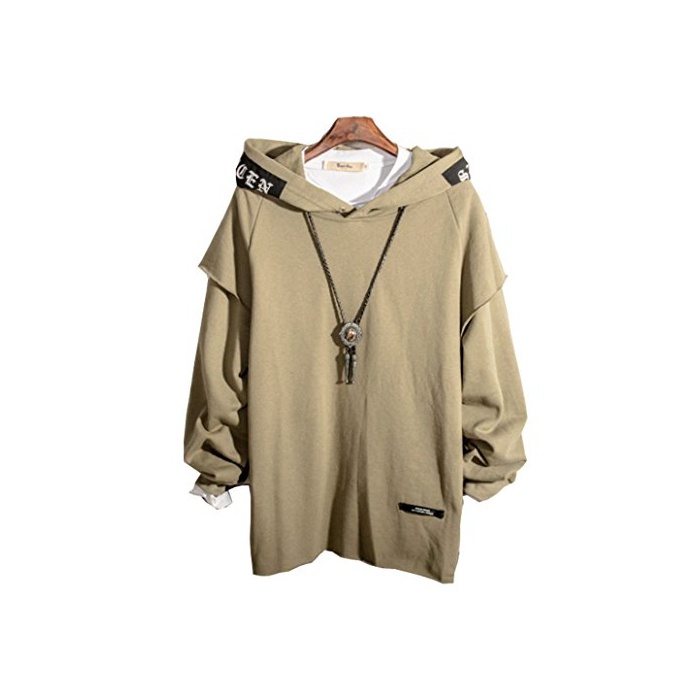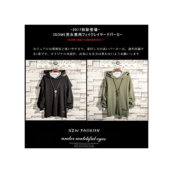 [Isome]파커 맨즈 무지 트레이너 추복 페이크(fake) 레이어드 긴 소매 멋쟁이 넥크리스부 그린XL