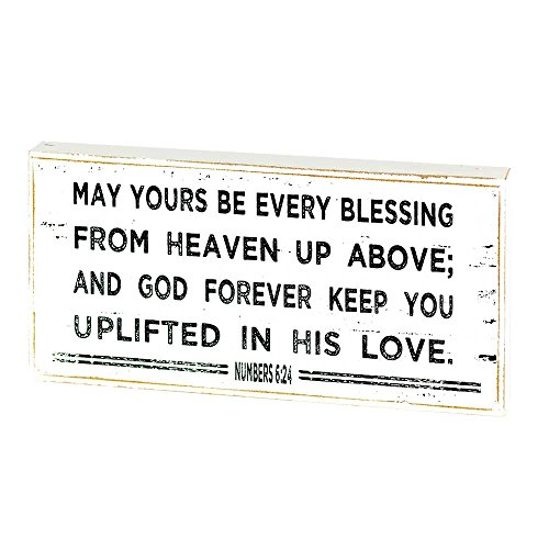 May Yours Be Every Blessing Distressed White 8 x 4 Wood Tabletop Plaque Decoration