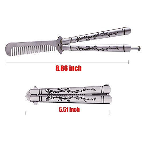 - Function: Butterfly knife as camping practice tool comb, is a perfect combination of comb and knife. No sharp edges, no offensive blade, ideal for safe flipping and training and it’s a good helper of daily and emergency survival.