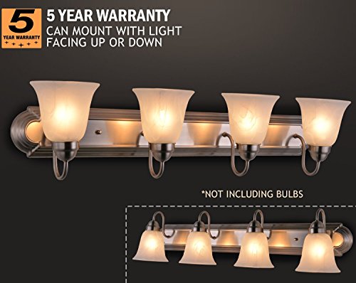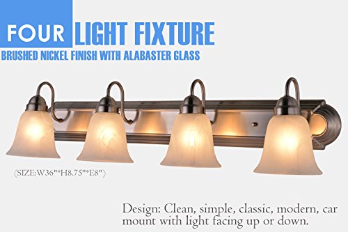 Sunnyfair 4 Bathroom Vanity Light Bar Bath Fixture, Brushed Nickel with Alabaster Glass, UL listed