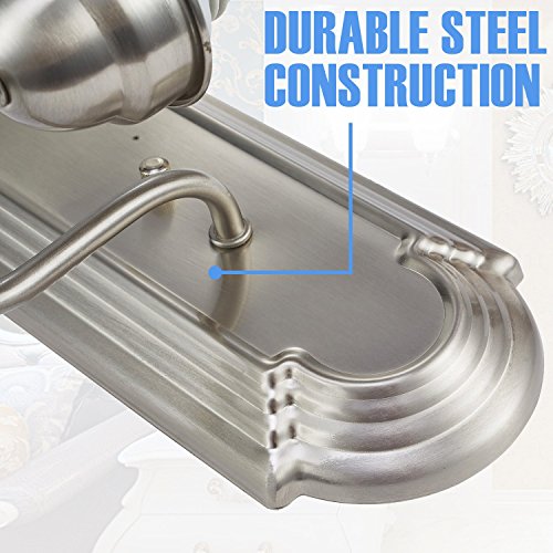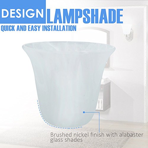 - Durable steel construction ,brushed nicke finish with alabaster glass shades