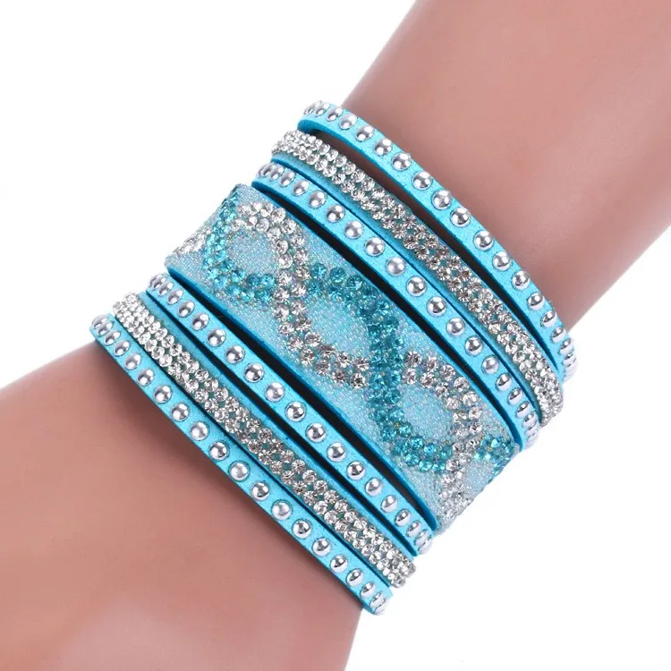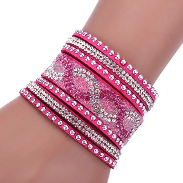 wrap bracelet:multilayer leather bracelet crystal wrap braclets