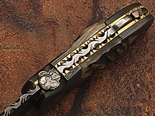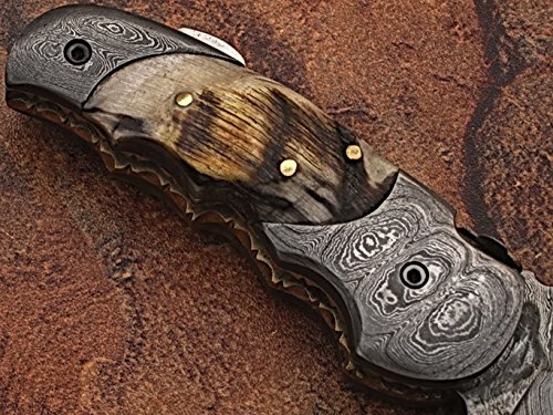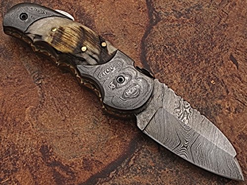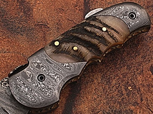 Custom made damascus blade & bolsters ram horn handle,with genuine leather sheath 5060-RD