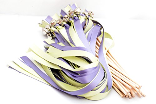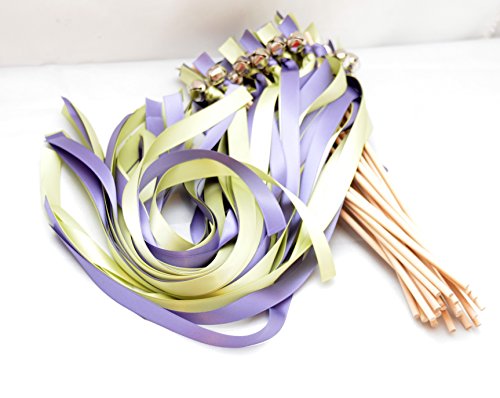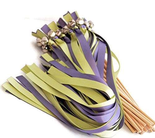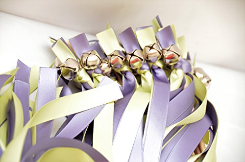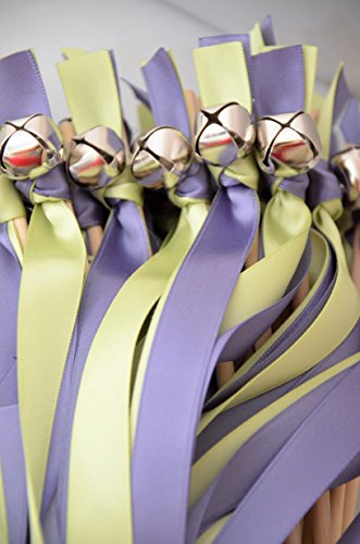 25 Hyacinth & Lime Juice Wedding Ribbon Bell Wands #DivinityBraid #SendOffBells #WeddingWands #Wedding #favors #CeremonySendOff #Party #KissingBells #RibbonWands