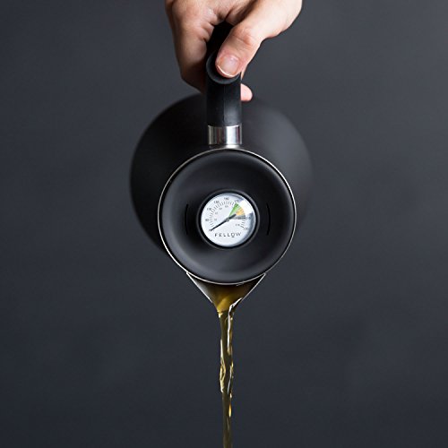 STEEP LIKE A TEA MASTER: Raven stovetop kettle and tea steeper makes steeping any type of tea easy with its brew-range thermometer, weighted handle, and integrated tea filter. Heat and steep your tea in the same vessel, saving time and cleanup. Steep at the perfect temperature for green/white teas, oolongs and black teas using the color guide on your brew-range thermometer. Raven's contemporary yet classic design takes familiar shapes, like the iconic pointed tea spout and mixes it with Fellow's modern design style.