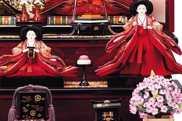 親御様、お子様、縁者様の健康と発展を願いながら職人が丁寧に仕上げた雛人形飾り/雛人形が初節句のお祝いにはなを添えます。