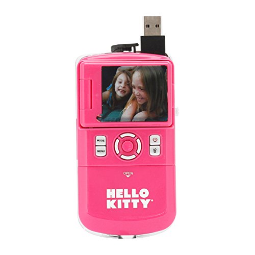 This Hello Kitty 38009-TRU digital video recorder features a Hello Kitty design. It has a 1.8" preview screen and that turns 180 degrees for easy shooting. A built-in microphone helps you catch awesome moments. With this great video recorder, you can watch your videos on TV. The Snap n' Share software CD helps you do things with your video.Feature