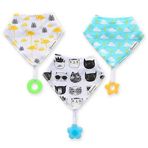 INNOVATIVE DESIGN POINTS AND GUARANTEE - -Add a 100% Pure Organic FDA Food-Grade Silicone Teething Pendant Design When Baby Drooling Will By Bibs Absorbed This Is a Good Creative Design,We Design Fashionable Clothing Accessories For Babies That are of The Highest Quality. These Bandana Bibs are Durable and Long-Lasting Even With Babies That Never Stop Drooling. That's Why Our Product Is Backed With a 100% Money Back Guarantee.
