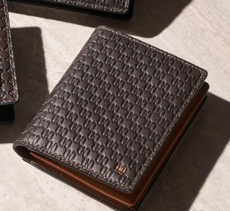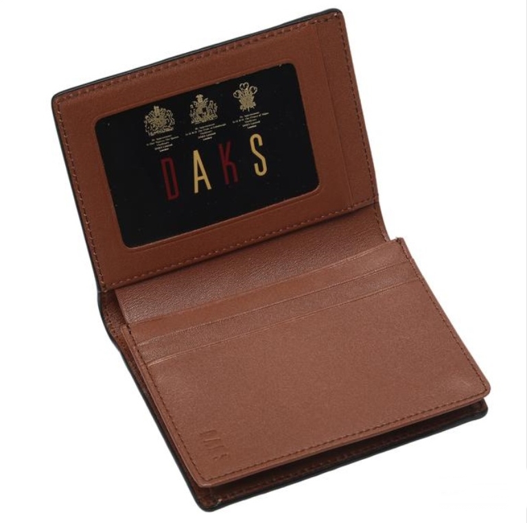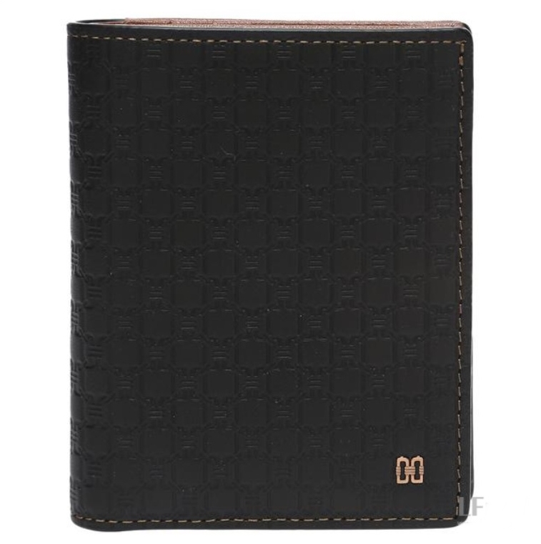 다크 브라운 컬러의 가죽 DD 패턴이 고급스러운 지폐 수납형 카드지갑입니다.