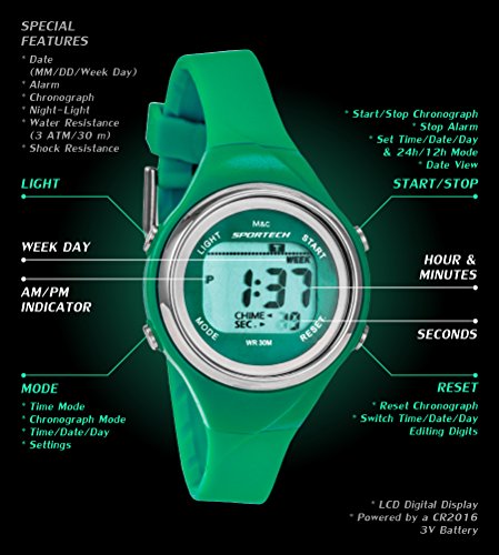 Unisex Watches by Sportech - Green Digital Water Resistant Sport Watch - Make Every Second Count - SP10701