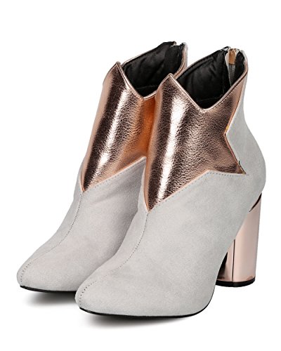Studio : Cape Robbin Publisher : Cape Robbin Binding : Apparel Product Description These adorable booties are made with a faux suede upper, pointy toe and stitch accent. Also made with a metallic star embellishment, round mirror metallic heel, and hind zip for easy slip on and off. 0