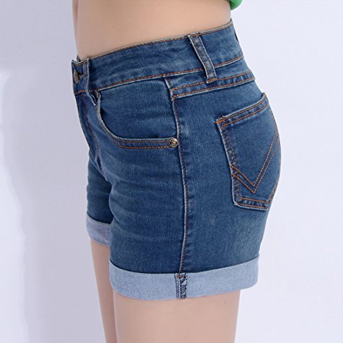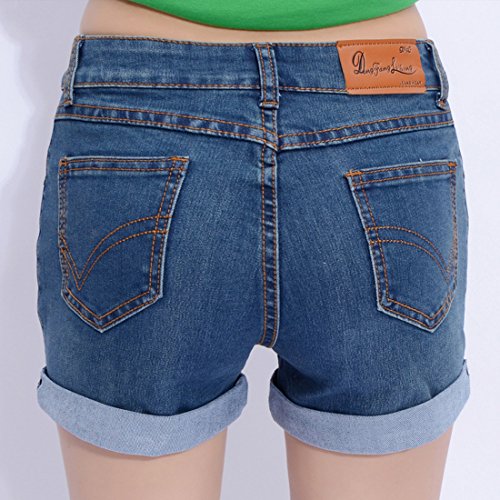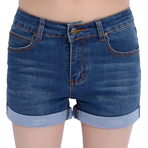 -. Title : Chouyatou Women's Basic Stretched Mid-Rise Turn-Up Cratched Denim Shorts