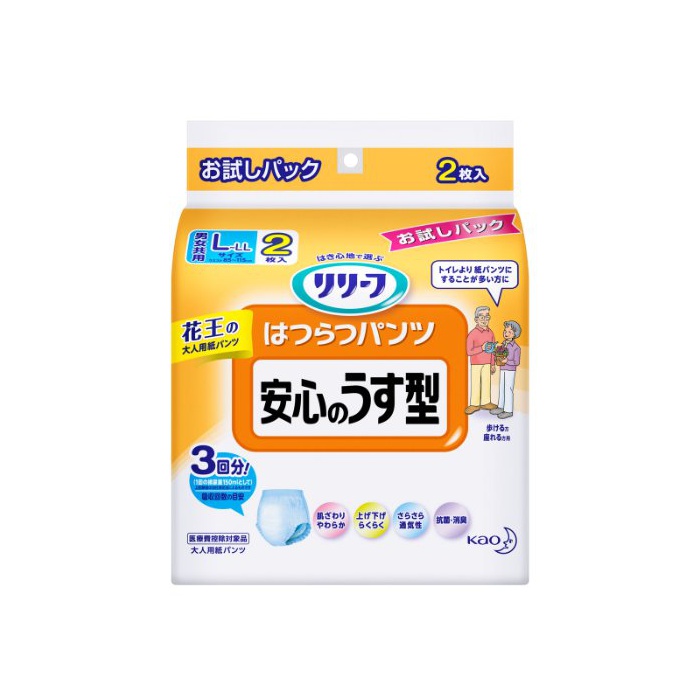 【시험 팩】릴리프 팬츠 타입 안심 얇은형 L~LL 2매입【ADL구분:혼자서 걸을 수 있는 분(쪽,편)】