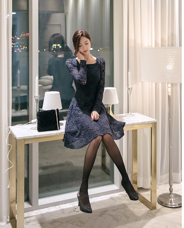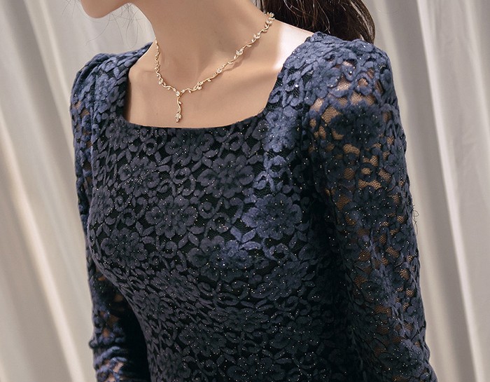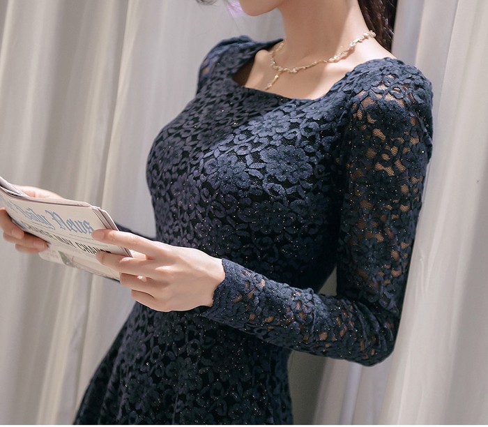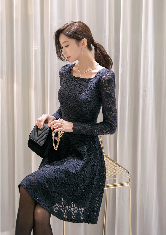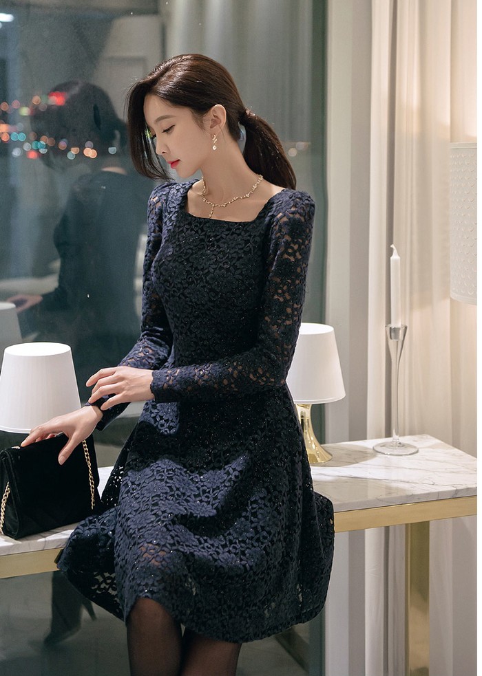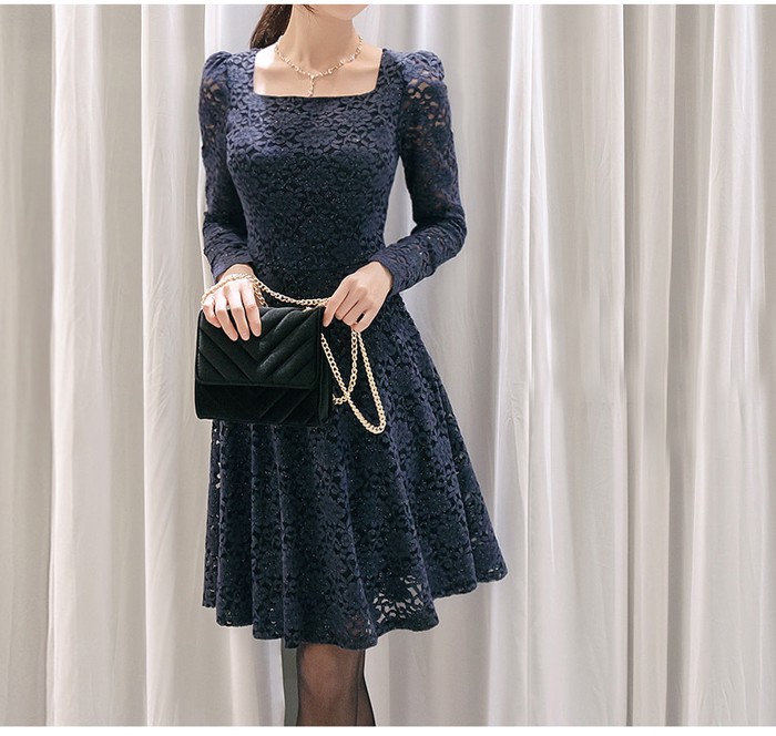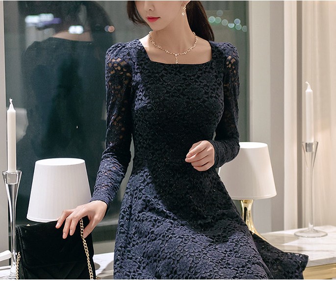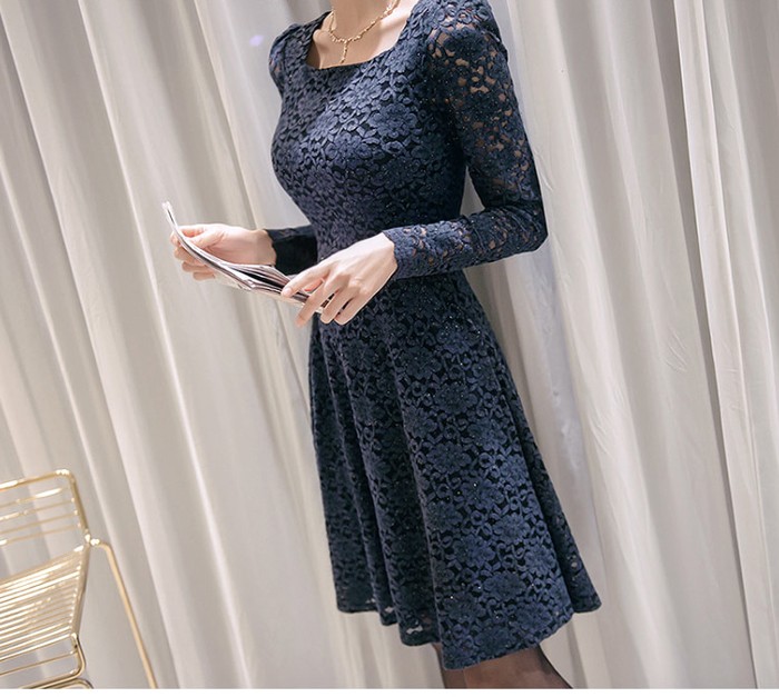 商品名:ワンピース 膝丈 レース 長袖 きれいめ