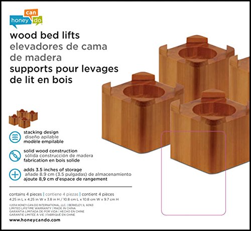 Honey-Can-Do STO-01150 Wood Bed Lifts, Maple Finish, 4-Pack