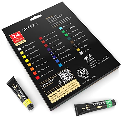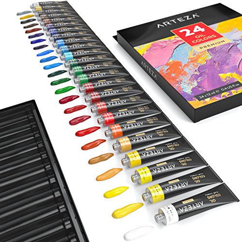 ARTEZA Oil Premium Artist Paints Set - 24 Colors (24 x 12 ml / 0.74 US fl oz)