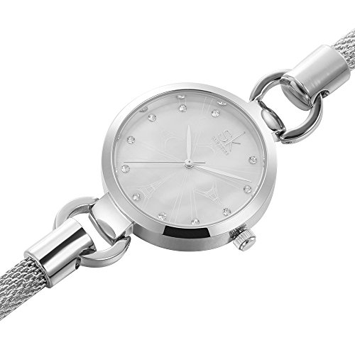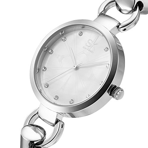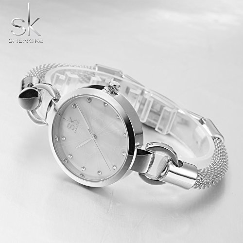 SHENGKE SK Fashion Silver Quartz Watches for Women with Diamonds Bracelet Watches for Ladies