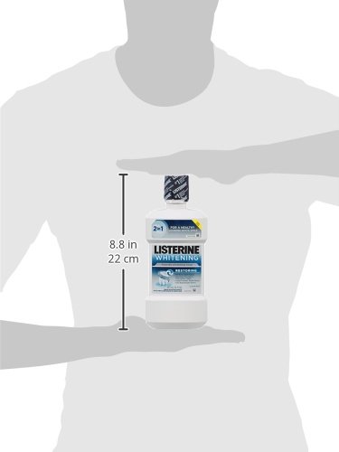 Reveal a whiter, healthier-looking smile with Listerine Whitening Restoring Fluoride Rinse with a Clean Mint flavor. This rinse restores enamel to strengthen teeth as it whitens teeth safely. The dual-purpose formula kills bad- breath germs on contact and helps prevent tooth decay. Add a 60-second rinse to your morning and evening routines for a healthy-looking, bright smile. The smooth Clean Mint flavor leaves your mouth feeling fresh and clean.Feature