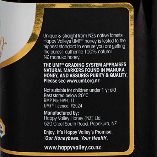 - Feature : UMF 5+ (MGO 80+) manuka honey from the pristine native forests of New Zealand. This Happy Valley UMF manuka honey is lab-certified to UMF 5+ standard, equivalent to methylgloxal (MGO) 80+ / UMF is the association of New Zealand honey producers that governs the manuka honey UMF rating system specifically to protect consumers from being misled by the many honey labels making claims to be 'active' or 'bio-active' without achieving UMF manuka honey standards / Each batch of Happy Valley manuka honey is individually tested by an independent laboratory to certify its UMF rating. Only Happy Valley publishes its lab test results, which means you can be certain you are getting honey of the quality and rating on its label / Make an informed choice and beware of manuka honey that claims health benefits without carrying a UMF rating. UMF is the association of New Zealand honey producers that governs the manuka honey UMF rating system specifically to protect consumers against honey labels making unsubstantiated claims to be 'active' or 'bio-active' / Attributed with health superpowers, manuka honey has long had a reputation as a healing honey and is believed to assist in digestive health, immunity, to help relieve skin ailments and to provide an energy boost