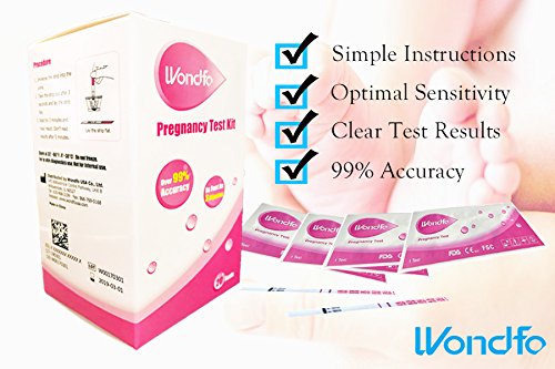 Studio : Wondfo Publisher : Wondfo Binding : Health and Beauty Product Description INSTRUCTIONS: 1. The Wondfo Pregnancy Test can be performed at any time of the day; however, testing first morning urine is preferable. 2. Urinate into a clean, dry cup or container. 3. Remove the testing device from the foil pouch by tearing at the notch. Hold the strip at the colored end. (Do not touch the arrow end; do not touch the test window/the middle part of the strip) 4. Holding the strip vertically, immerse the end of the strip with the arrows into the specimen. Do not immerse past the MAX line. 5. Take the strip out when the sample has migrated to the test window (at least 5 seconds). Lay the strip (MAX side facing up) flat on a clean, dry, non-absorbent surface. READING YOUR RESULTS 1. While you are waiting for your result, you may notice a colored solution moving across the test strip. This is normal. You need to wait at least 3 minutes to confirm the result. The test SHOULD NOT BE EVALUATED AFTER 30 MINUTES. The exact color of the line is not important. 1 Line = Not Pregnant If only 1 colored line appears as the control line, the test is negative and you can assume you are not pregnant. 2 Lines = Pregnant If 2 colored lines appear, 1 as the testing line and 1 as the control line, the test is positive and you can assume you are pregnant. Even if the lines are very light in color, you can still assume you are pregnant. Invalid Results: If the control line does not appear, the test is invalid. Invalid results may be an indication that the test strip was not thoroughly saturated in urine. In this case, re-dip the test for at least 5 seconds and wait at least 3-5 minutes to read results. If there is still no control line, the test is invalid and you should retest the following day. Each test is designed for a single use and should not be reused. 0