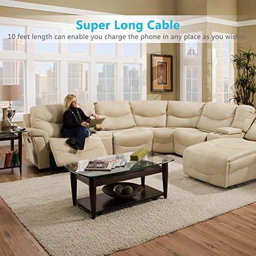 Extra Long - Standard 10FT (3 Meters) length. The USB Cable will provide you great convenience especially when you are lying on bed or on travel. No worry for the short length of cables again.