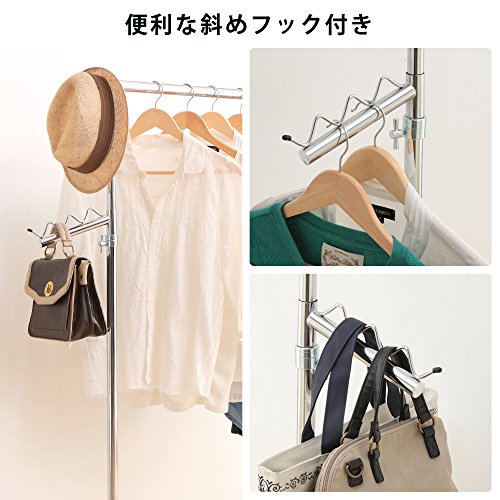 小物や良く着る服をかけられる、斜めフックが便利。