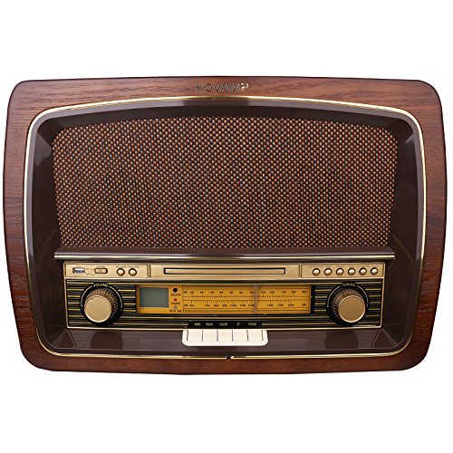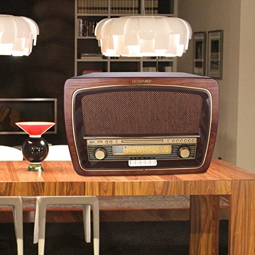 HOVAMP Classic Vinyl Record Player Turntable with AM/FM Radio, CD,USB for MP3 for Smartphones & Tablets