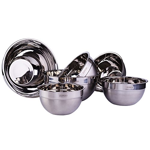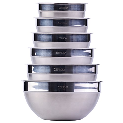 ZESPROKA Stainless Steel Mixing Bowls, Nesting Bowls, Matte and Mirror Finish, Set of 6