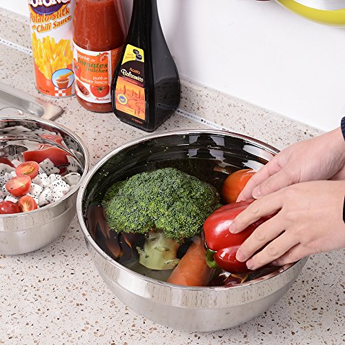 - Made of stainless steel, these mixing bowls are rustproof. Besides, they are food-safe, resistant to high and low temperature.